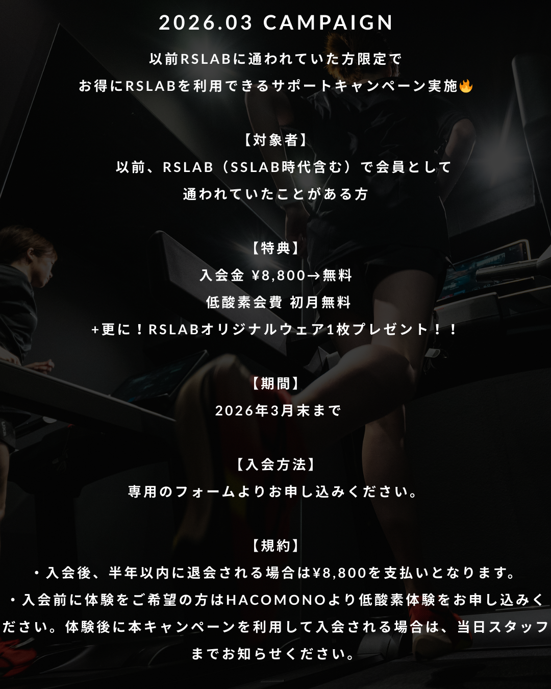 以前、RSLABに通われていた方限定でお得に低酸素RUNを利用できるサポートキャンペーン実施します🔥